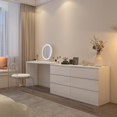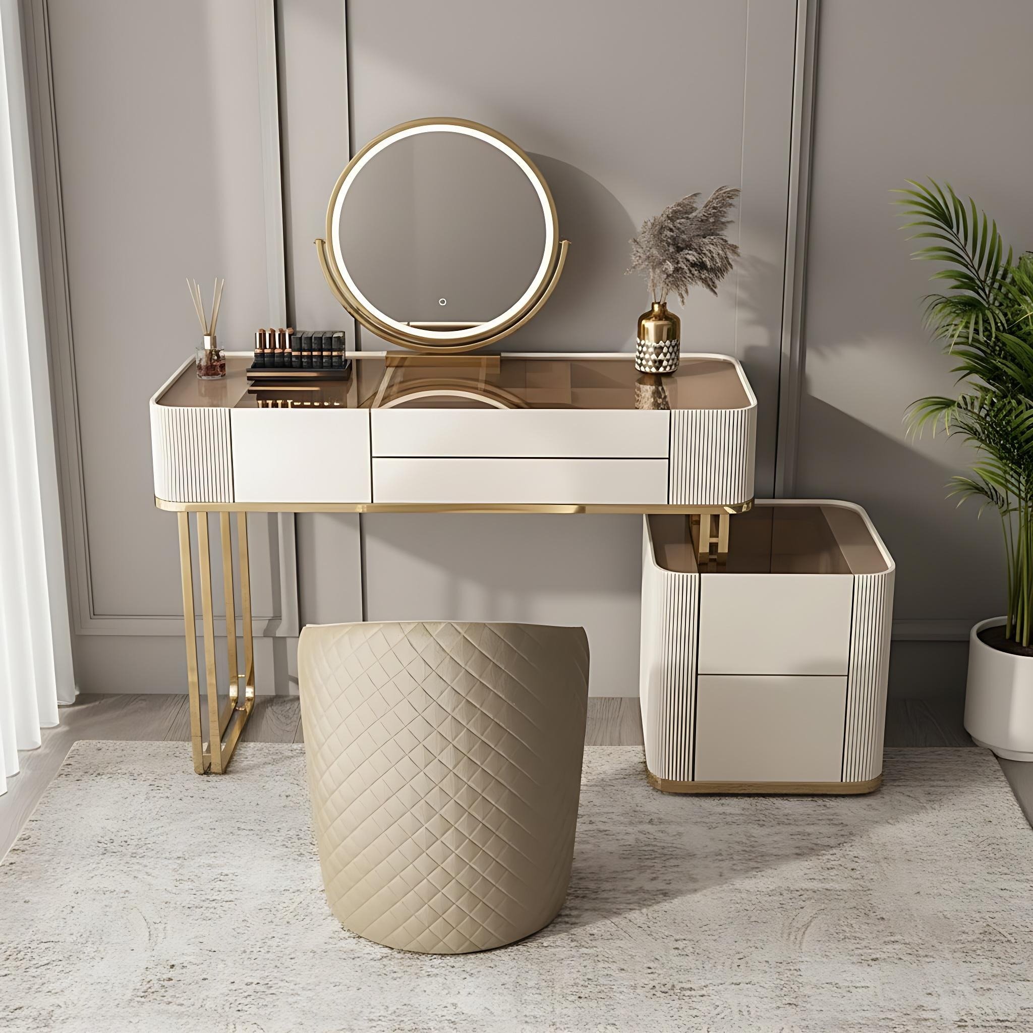 Set da toeletta moderno con cassetti, comò in legno massello, con specchio