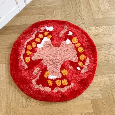 Tappeto trapuntato a forma di frutto di pomodoro, motivo divertente, per soggiorno, ingresso interno, camera da letto, comodino, arredamento morbido