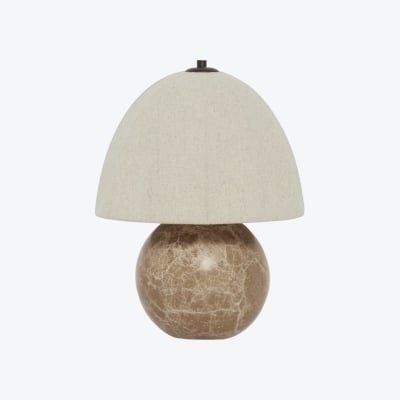 Lampada da tavolo Cordove con base a sfera scultorea, lampada da tavolo artistica - Paralume in lino per camera da letto e soggiorno