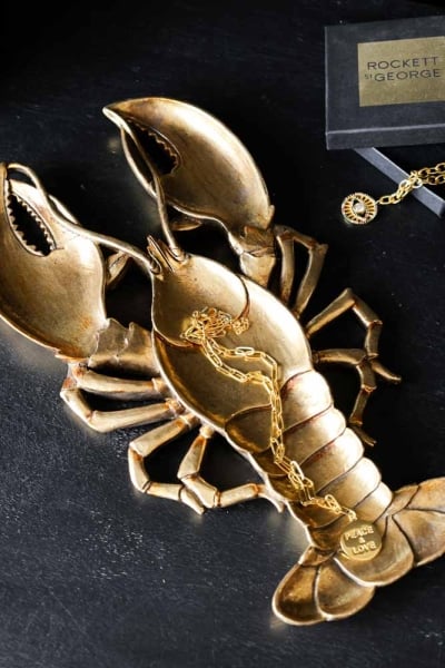 Vassoio portaoggetti a forma di aragosta in oro antico